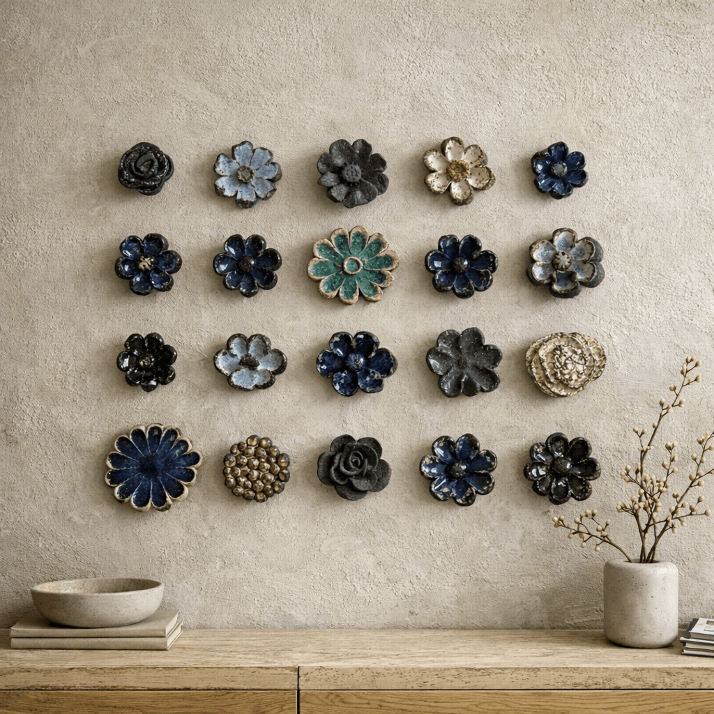 CLSTR is a ceramic artwork composed of unique sculptural elements. Each unit (GSTR) is numbered and contributes to a system that can grow over time, ranging from intimate groupings (patches) or installed as large-scale installations (fields). The project bridges contemporary ceramic practice, collectible sculpture, and modular installation. Each element is hand-built in stoneware, glazed, fired to 1240ºC, and documented. CLSTR exists as a dispersed network of GSTRs across private interiors and architectural spaces.