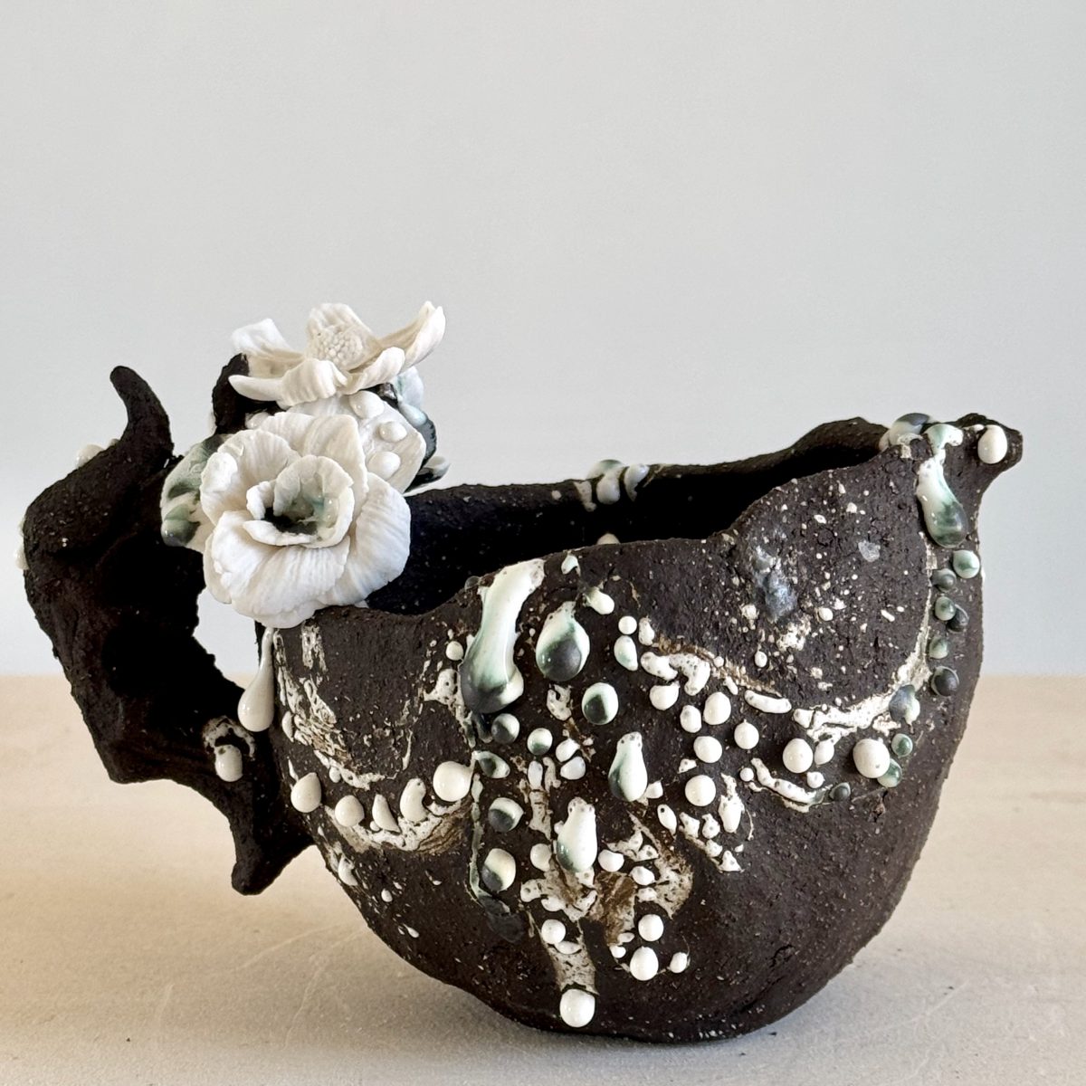 Small Vessel 10 x 15 x 10 cm , stoneware and porcelain Small Vesel , 10 x 15 x 10 cm Dimensions: 10 x 15 x 10 cm Collection: Vulcanic Rococo Year: 2025 Materials: Stoneware and Porcelain. AVAILABLE, porcelain, stoneware, Vulcanic ← Le Bélier → Grand Etagère